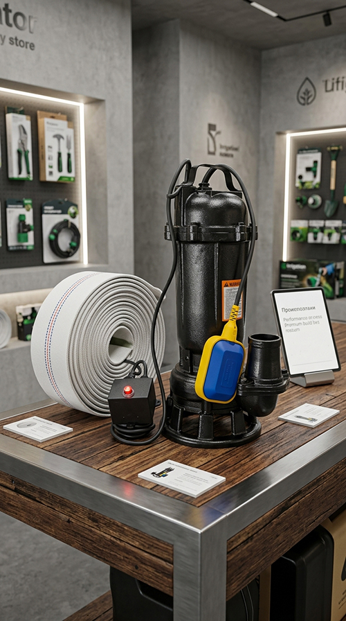 Комплектация включает нож для резки, что облегчает подачу и шланг длиной 10 метров для удобства использования. Этот насос станет неотъемлемым помощником в отводе стоков и воды из любых помещений.
